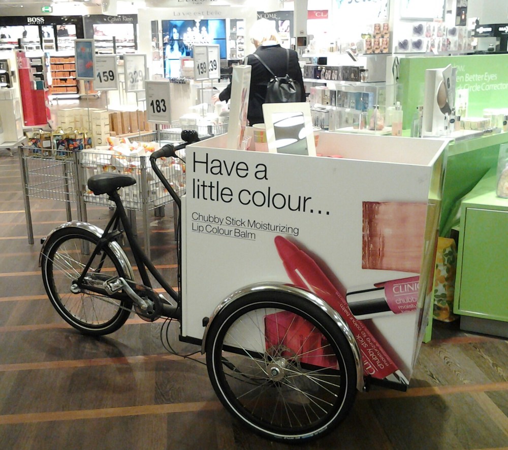 This summer, Estée Lauder ordered four Christiania tricycles from our London dealer, London Green Cycles to set up as promotional tools for four international airports.