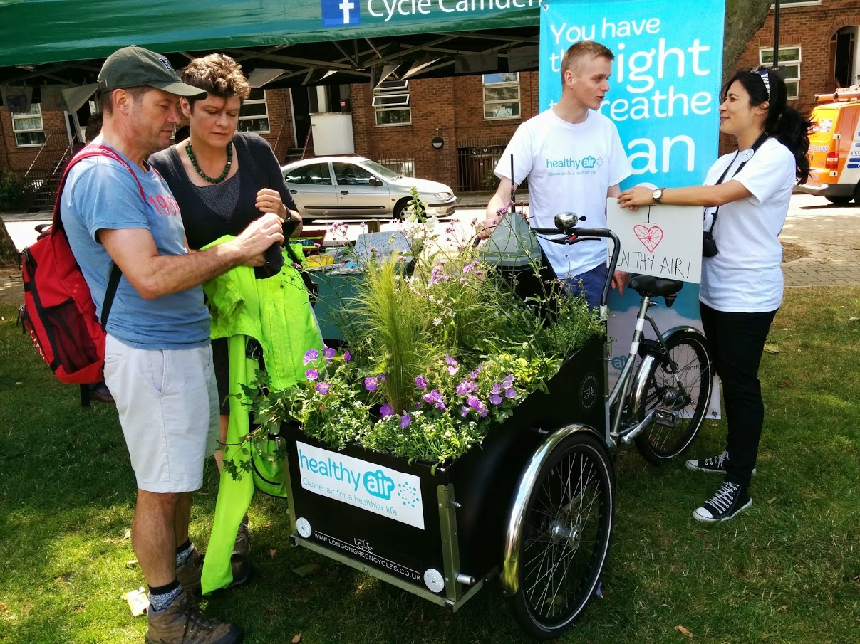 On 05.07 Healthy Air joined forces with Climate Revolution at the Urban Outdoor Festival. They rented a tricycle from London Green Cycles and fitted a sophisticated air quality monitor and used it to plot NO2 levels during the Festival and on a hour-long ride.