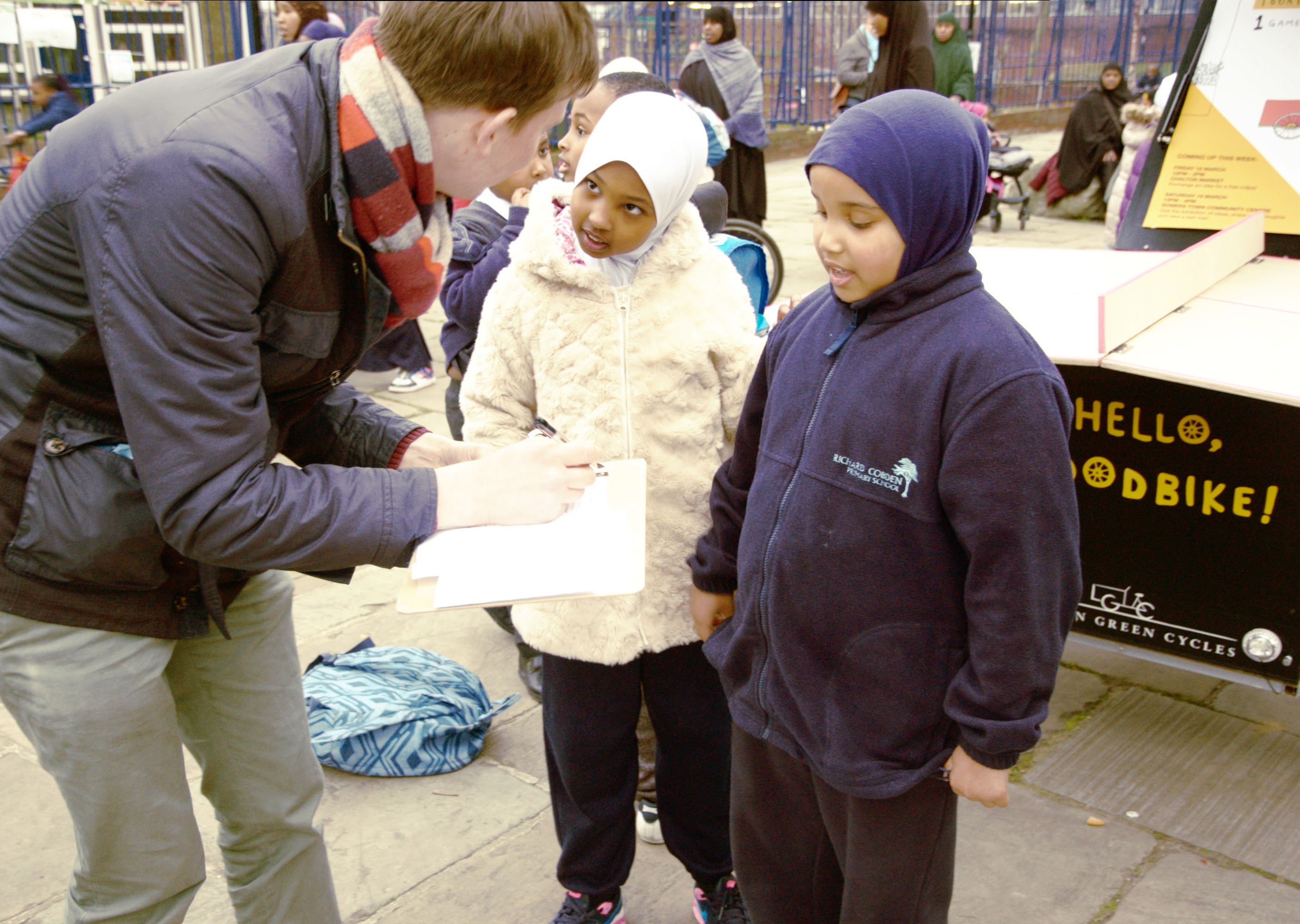 An interesting initiative took place this week in Somers Town, an area in Central London, between Euston Station and the British Library, with a very ethnically diverse population. Creative regeneration specialists Clear Village and collaborative design group Eclective, took a Christiania cargobike out in the community. The idea was to start a conversation around its use: ‘We will be exploring how we can design and build the – aptly named – Good Bike to be used and enjoyed by the community’ said the organisers.