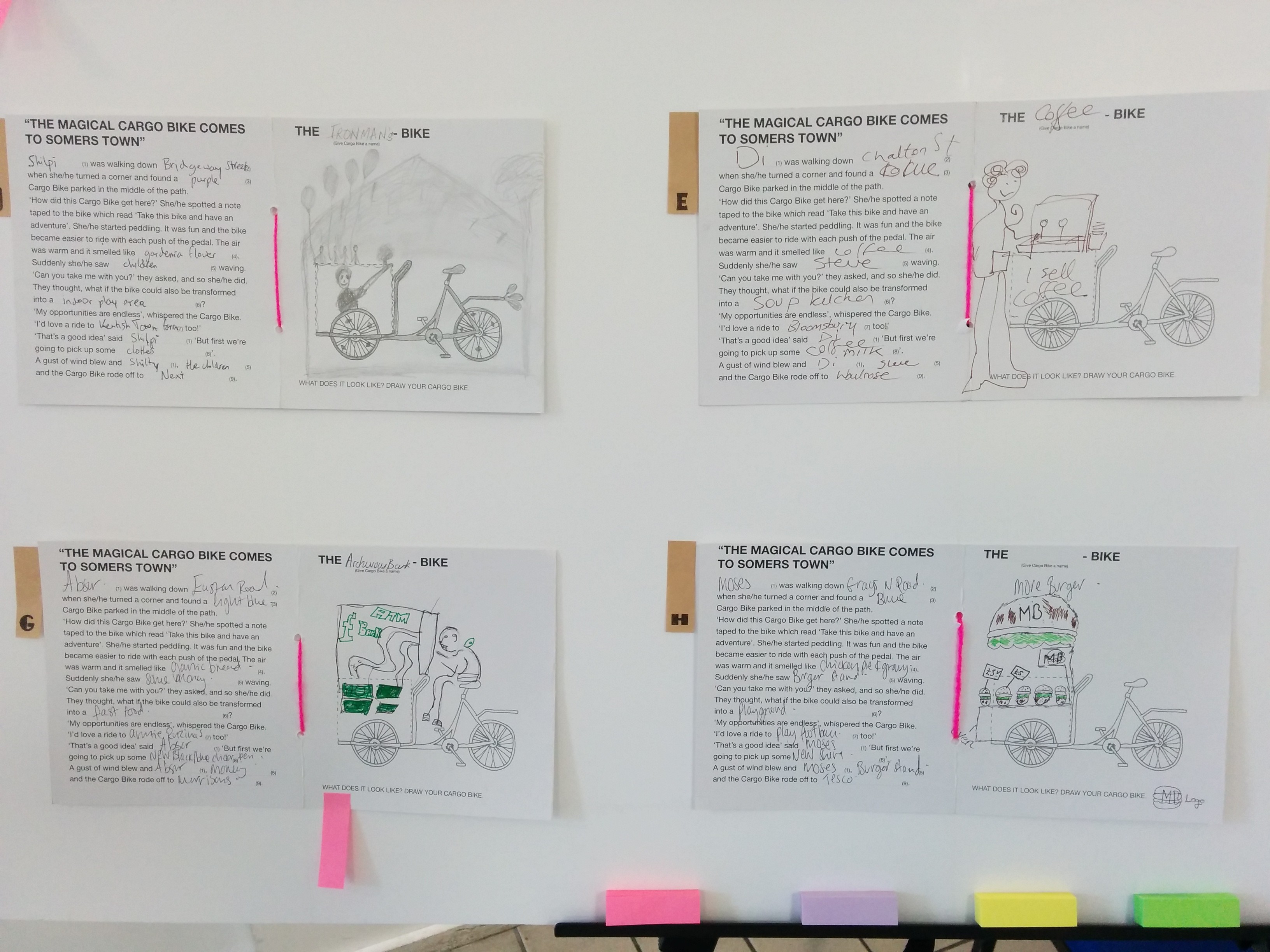 Some great ideas came through on how to utilise the cargo bike including a mobile ATM machine, a funky Burger stall, a football bike and a clothes-galore bike!