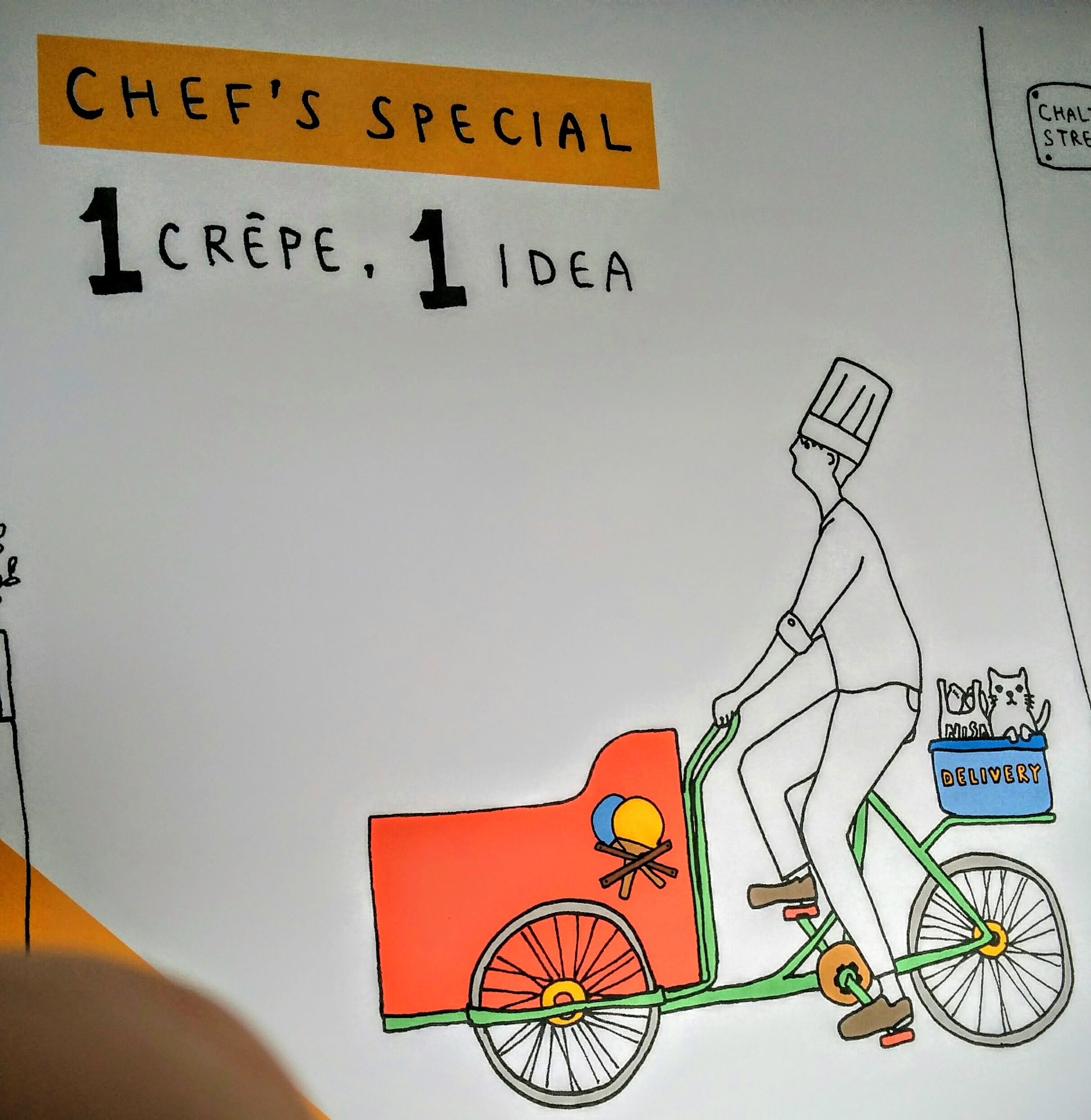 Over the weekend, ideas continued flowing in exchange of a free crepe as the Good Bike pootled down to Chalton market and Ossulton Street, NW1. All ideas generated throughout the week were displayed for everyone to see and to share further thoughts on community use of the utility bike. What a great initiative!