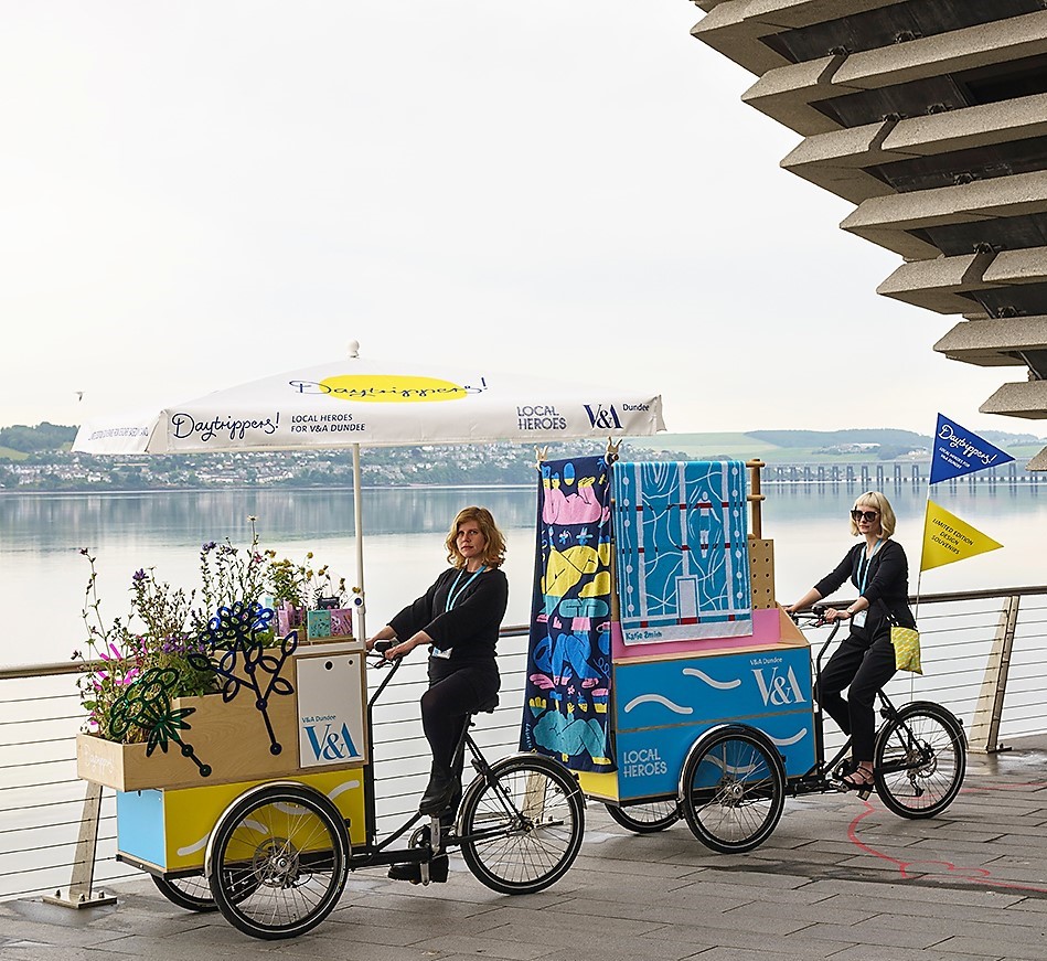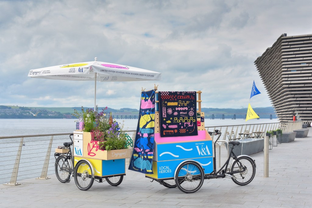 Aymeric Renoud of Draff worked with Martin Baillie to design custom mobile displays. Two iconic Christiania cargo bikes have been carefully adapted to display the special commissions. They will traverse the V&A Dundee plaza, where visitors can find out more about the designers from Local Heroes friendly ambassadors and purchase a collectable souvenir.