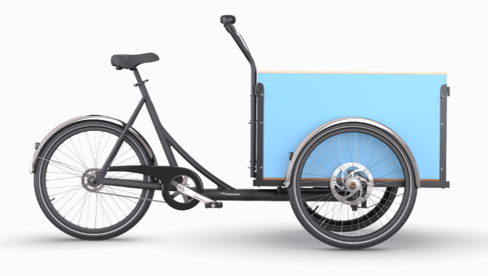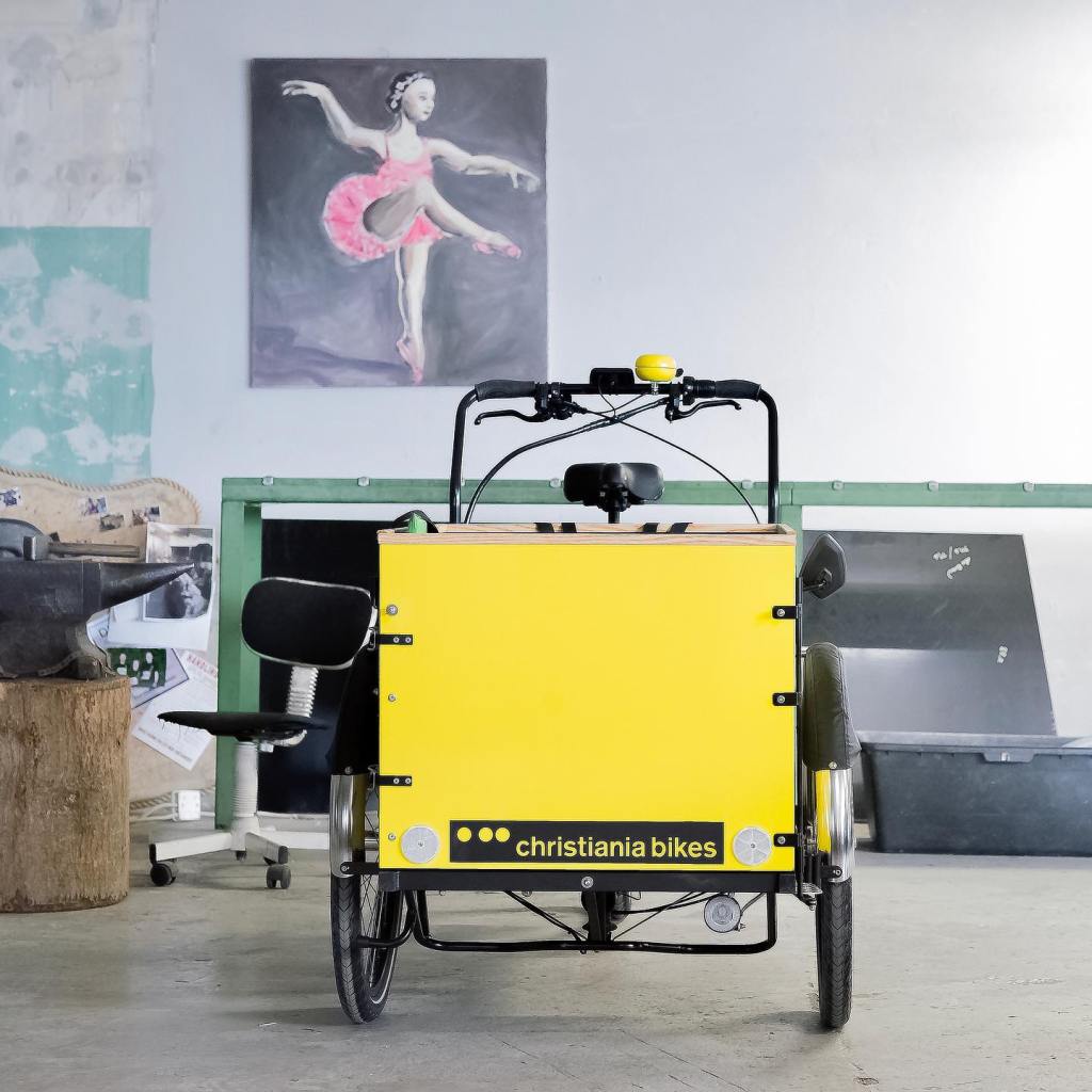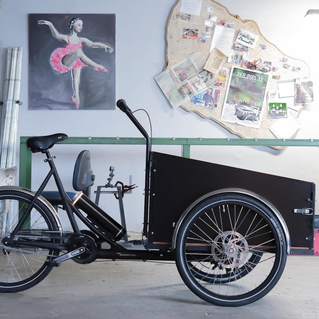 Model Straight is a Model Classic with Straight Box. The advantage for families is that you can fit two children benches for up to four children; and for businesses more cargo capacity and more space for your logo The turning radius is only 480 cm making it a surprisingly manoeuvrable cargo bike in most urban settings. The total width of 87cm has been designed to make it possible to easily enter normal sized backyard doors in Copenhagen.